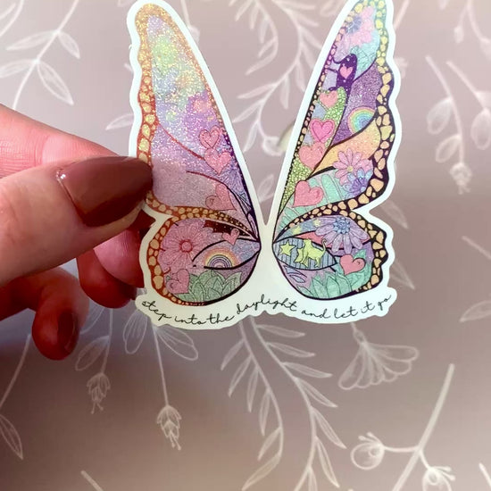 These gorgeous butterfly mural stickers shine bright with stunning detail! Featuring a painted design with intricate detail, it has a subtle sparkle that shimmers in the light. (Glitter is sealed by vinyl overlay, it will not transfer.) These stickers look great on a laptop, water bottle, phone case, or wherever makes you happy! These are glossy vinyl stickers, dimensions 2.3" x 2.8". Perfect for music lovers! Stickers are made to be scratch-proof, weather-proof, and UV-resistant. Wherever you put them, they should stay beautiful for years to come!