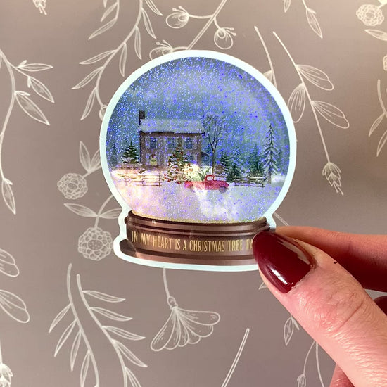 Christmas Farm Snowglobe Shimmer Sticker, Tree Farm Nostalgic Sparkly Sticker