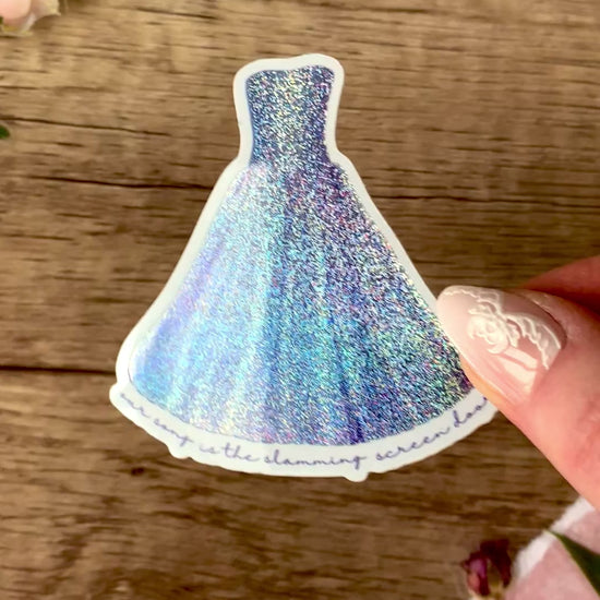 These adorable dress stickers are a perfect way to remember the album that started it all! The design features a cornflower blue gown with a tulle skirt, just like the classic music video! A subtle shimmer effect makes them sparkle in the light! (Glitter is sealed by vinyl overlay, it will not transfer.) These stickers look great on a laptop, water bottle, phone case, or wherever makes you happy! These are glossy vinyl stickers, dimensions 2.5" x 2.6". Perfect for music lovers! Stickers are made to be waterproof, scratch-proof, weather-proof, and UV-resistant. They are also dishwasher safe. Wherever you put them, they should stay beautiful for years to come!