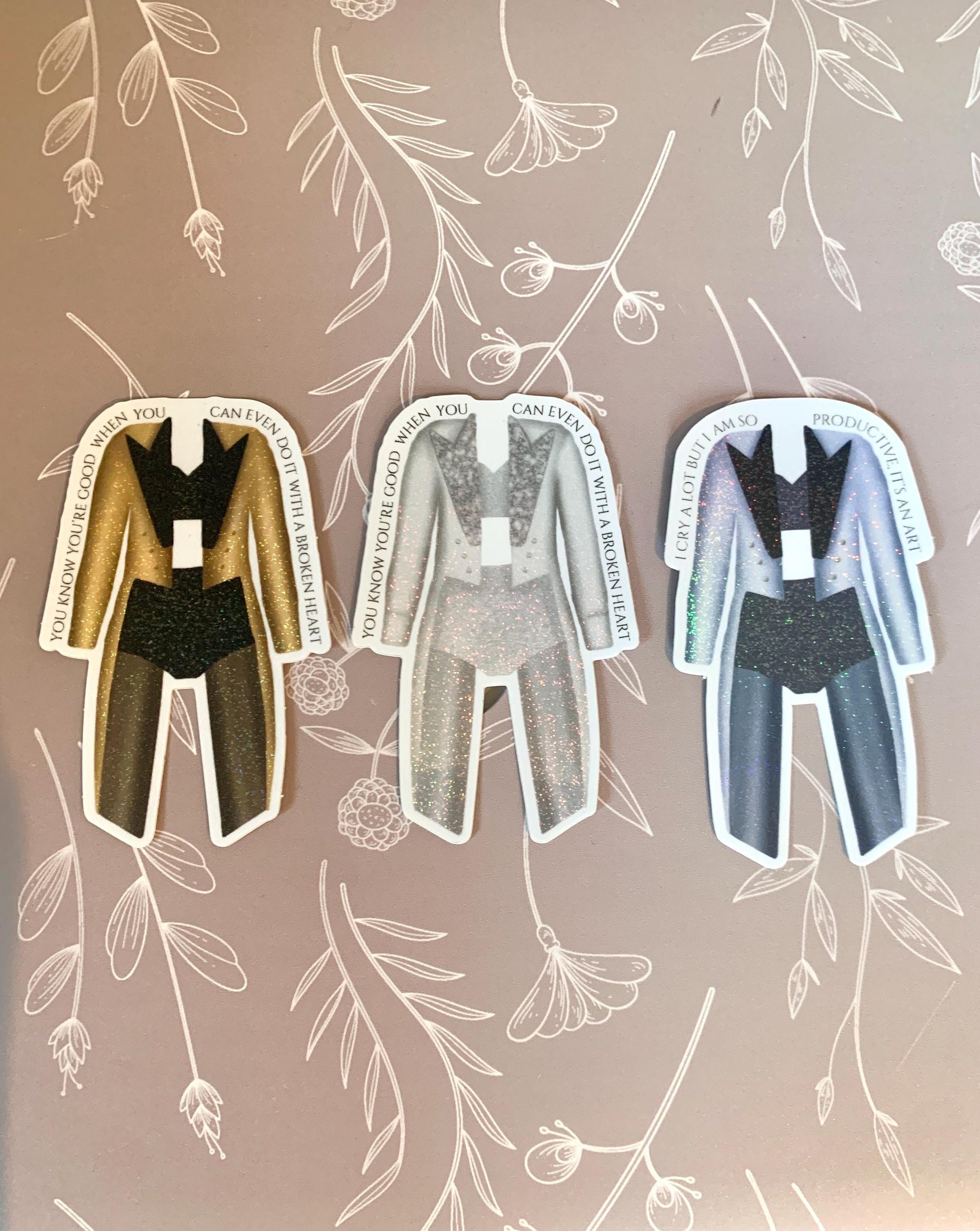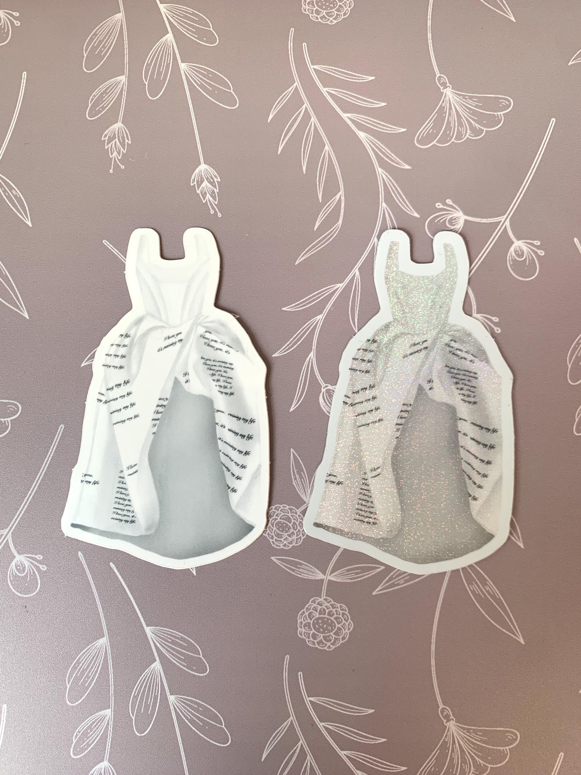 This beautiful sticker bundle is a gorgeous way to show off your love of poetry! Customize your collection with your favorite outfits (choose below!) Includes six stickers: one white poet dress, one jacket set, the variant books with gold accents, the glitter watch necklace, the coat of arms, and the albatross fountain pen. These stickers look great on a laptop, water bottle, phone case, or wherever makes you happy! These are glossy vinyl stickers, perfect for music lovers! Stickers are made to be waterproof, scratch-proof, weather-proof, and UV-resistant. They are also dishwasher safe. Wherever you put them, they should stay beautiful for years to come!