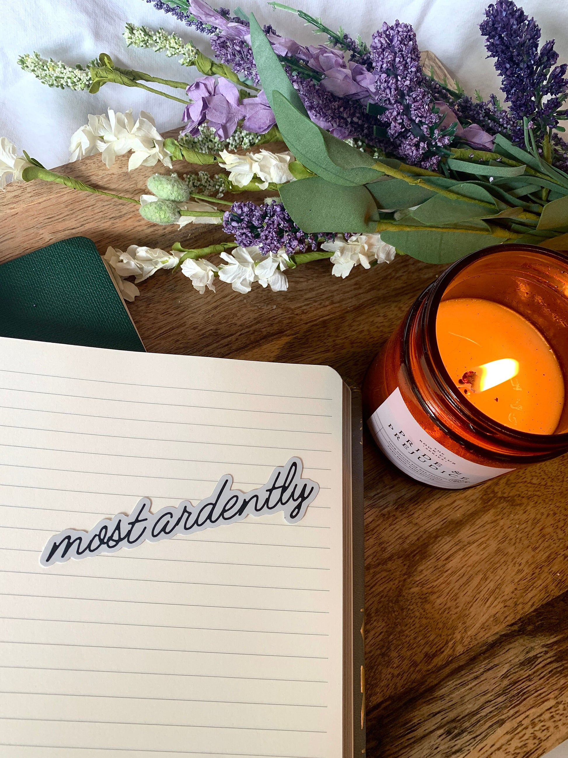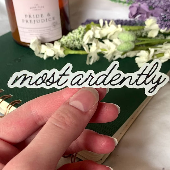 These beautiful stickers are a perfect way to immortalize your favorite romantic quote from Pride & Prejudice! Featuring the words "most ardently" in a classic script, these stickers also have a subtle black sparkle effect to capture the magic of the story. They look great on a laptop, water bottle, phone case, or wherever makes you happy! These are glossy vinyl stickers, dimensions 3.9" x 0.9". Perfect for Jane Austen lovers! Stickers are made to be scratch-proof, weather-proof, and UV-resistant. Wherever you put them, they should stay beautiful for years to come!