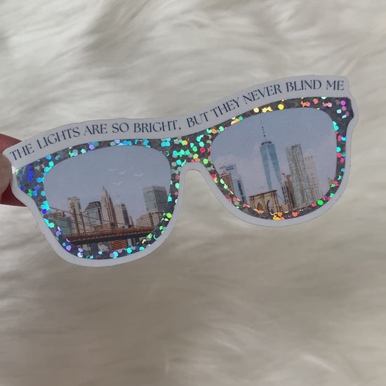 Sparkly Sunglasses New York Sticker, The Lights are So Bright